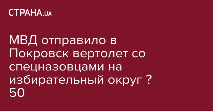 В Покровск Донецкой области направлен вертолет из состава сил авиаподдержки Министерства внутренних дел Украины для стабилизации ситуации при подсчете голосов в Окружной избирательной комиссии №50, сообщает пресс-служба министерства внутренних дел Украины.