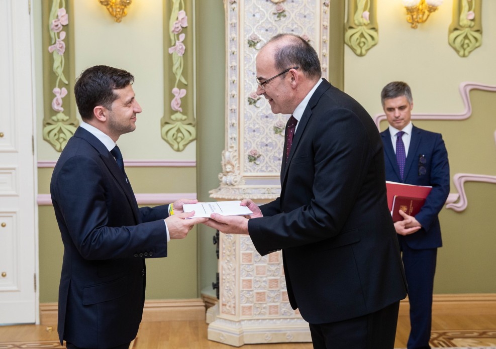 Президент Украины Владимир Зеленский принял верительные грамоты у ряда послов иностранных государств: Республики Корея - Квон Ки Чанга, ЮАР - Андре Иоганнеса Гроеневальда, Республики Финляндия - Пяйви Лайне, Республики Словения - Томажа Менцина и Федеративной Республики Германия - Анки Фельдгузен.