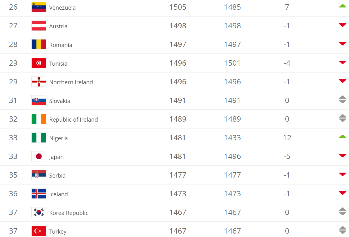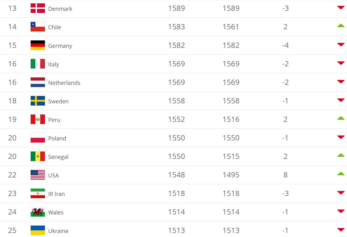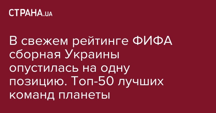 Международная федерация футбола ФИФА обновила ежемесячный рейтинг национальных сборных. Наша национальная команда за последний месяц не проводила никаких матчей, что и повлияло на то, что подопечные Андрея Шевченко опустились на одну строчку и теперь занимают 25 место.