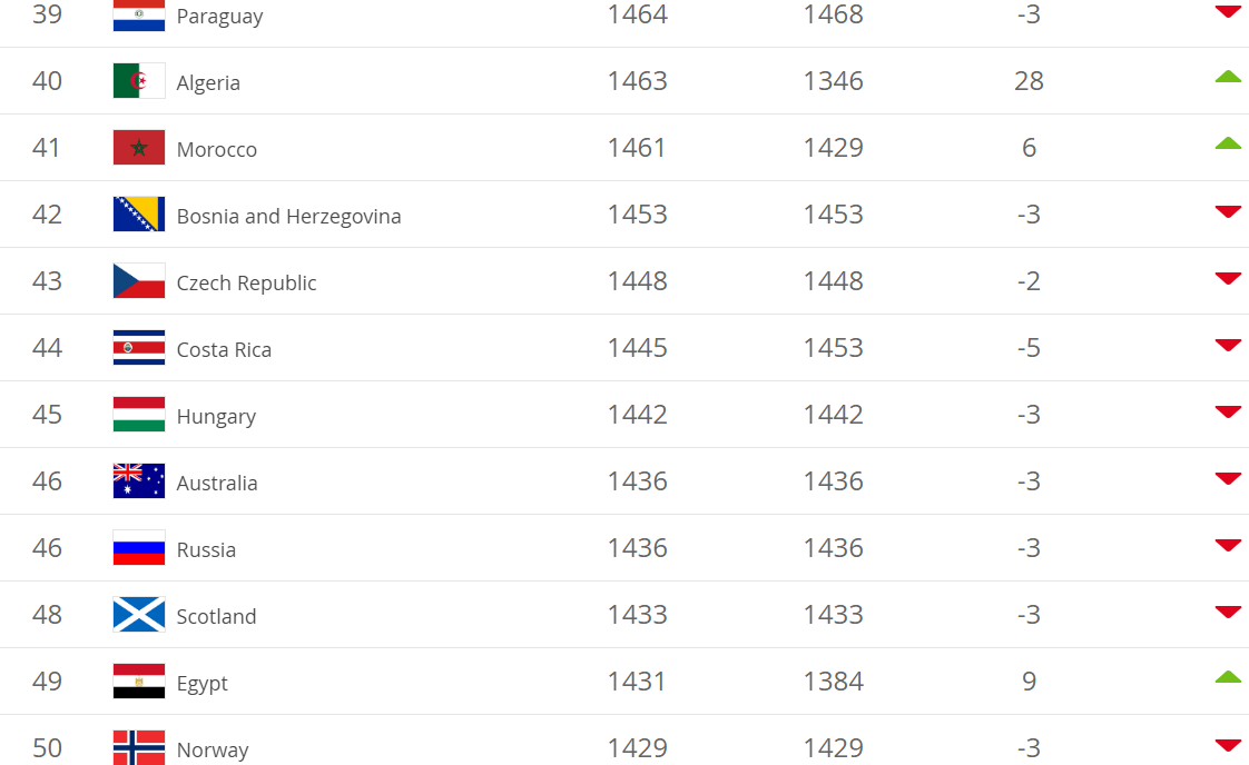 Итак, топ-50 лучших сборных мира, согласно новому рейтингу ФИФА.