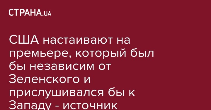 США настаивают на премьере, который был бы независим от Зеленского и прислушивался бы к Западу - источник