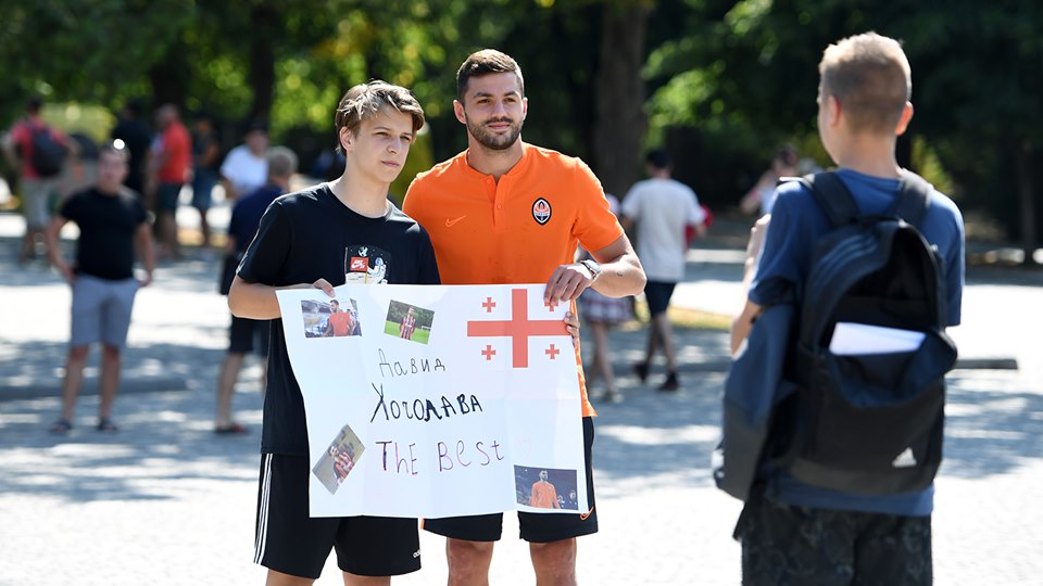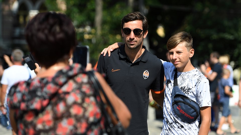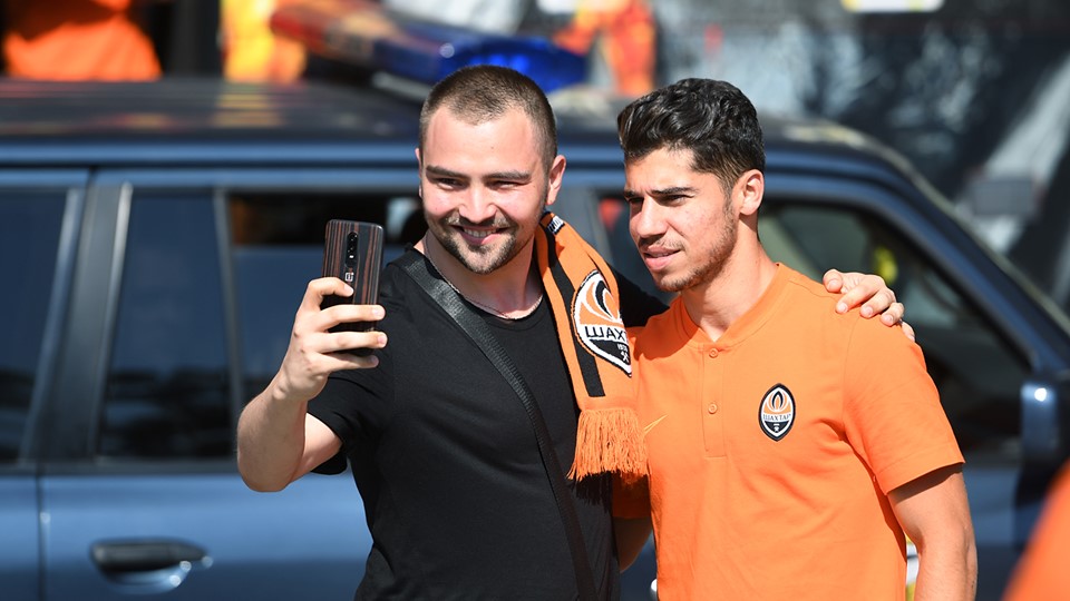 У отеля перед выездом на стадион динамовцев ждали очень много болельщиков. Игроки не отказывали в автографах и фото.