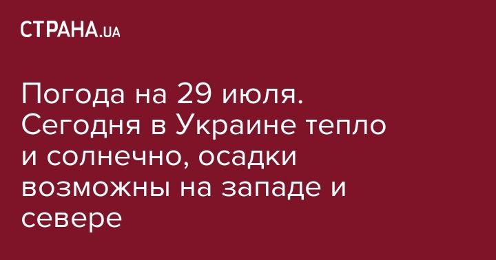 На большей части территории страны с утренних часов и до вечера будет ясное небо. Осадков не предвидится. Лишь на западе и севере страны ожидается пасмурная и дождливая погода. Во Львове, Ивано-Франковске, Чернигове и Сумах пройдут небольшие дожди. В Черновцах и Ужгороде умеренные осадки будут сопровождаться грозами.
