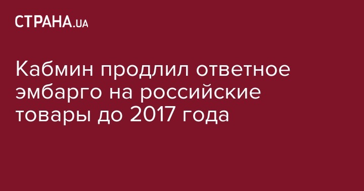 Кабинет министров в ответ на продление Россией продовольственного эмбарго до конца 2017 года зеркально продлил действие украинских контрсанкций на этот же период. Об этом сообщает "Интерфакс-Украина".