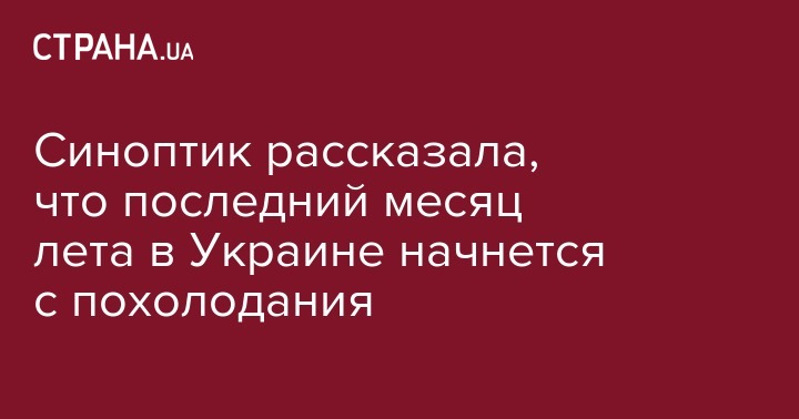 С четверга, 1 августа, в Украине ожидается снижение температуры воздуха: в течение дня в стране +22...+26 градусов. Об этом на странице в Facebook написала синоптик Наталья Диденко.