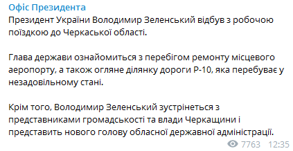 Сегодня Зеленский в Черкассах представит нового губернатора и осмотрит местный аэропорт