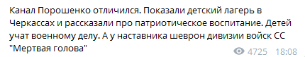 На канале Порошенко показали лагерь для школьников, которых ведет наставник с шевроном дивизии СС "Мертвая голова"