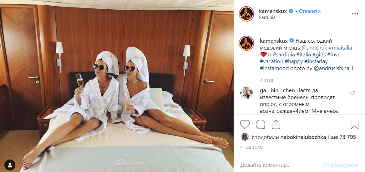 Накануне появилась информация о том, что Настя Каменских улетела на отдых в Италию вместе со своим мужем Алексеем Потапенко, а также их приятелями - музыкантом Алексеем Завгородным (Позитив) и его женой Анной Андрийчук-Завгородней.