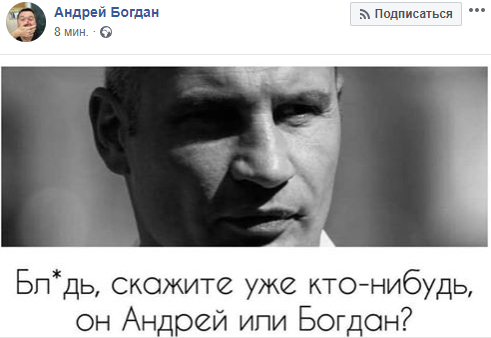 Сам Андрей Богдан, у которого в последнее время обострилось противостояние с Виталием Кличко, тем временем постит фотожабы о мэре Киева.