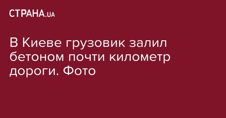 В Киеве грузовик залил бетоном почти километр дороги. Фото