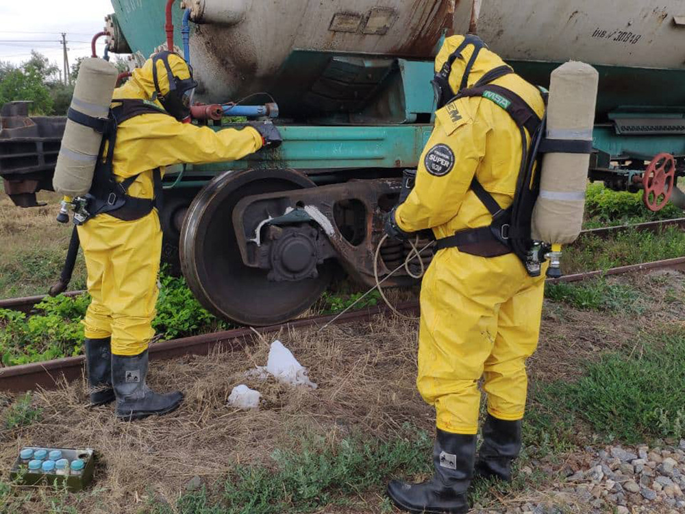 Спасатели ликвидируют последствия утечки из цистерны химически опасного вещества под Николаевом. Фото и видео