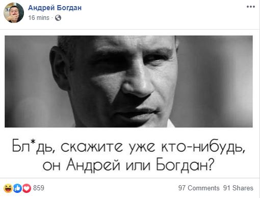 И третья версия того, что произошло, – это троллинг против злопыхателей Богдана. Например, Виталия Кличко, которому шеф ОП в разгар своего "увольнения" посвятил обидный мем в Facebook.