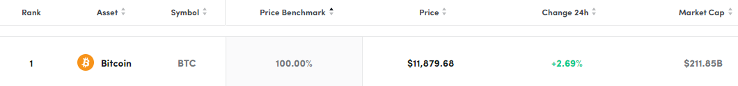 По состоянию на 09:25 6 августа курс биткоина составил $11 879. Об этом говорят данные площадки Сoindesk.