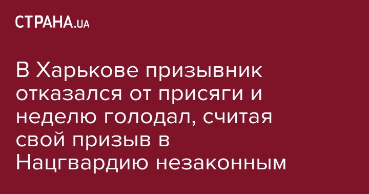 Харьковский призывник Егор Потаманов неделю голодал в знак протеста из-за якобы незаконного задержания и призыва на службу в воинскую часть Национальной гвардии. Об этом сообщает "Суспільне" со ссылкой на брата призывника Дмитрия Тищенко.