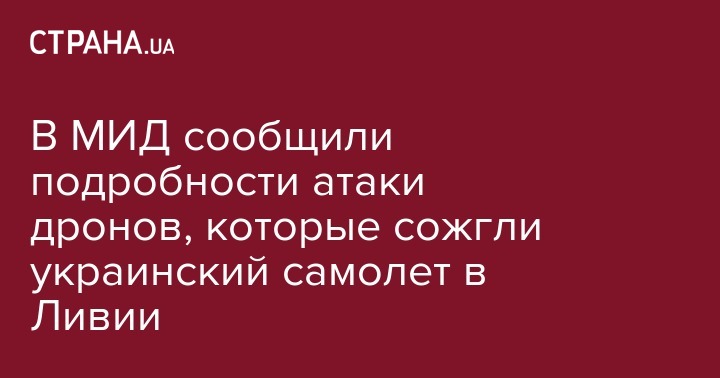 Как отметили в ведомстве, по данным Госавиаслужбы Украины, в 1:17 по Киеву во время разгрузки украинский самолет был атакован при помощи беспилотника. В ведомстве уточнили, что борт выполнял рейс с целью транспортировки гуманитарного груза для нужд Общества Красного Полумесяца Ливии. Сообщается, что все разрешения были в наличии.