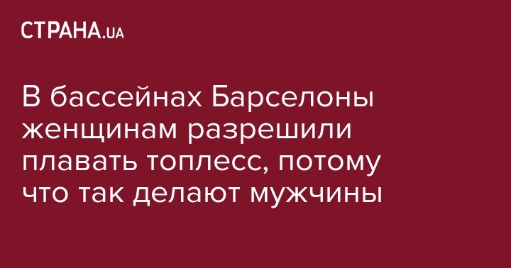 Мэрия Барселоны направила в муниципальные бассейны города отчет Центра по борьбе с дискриминацией, в котором запрещается отказывать женщинам плавать топлесс. Об этом сообщает издание Daily Mail.