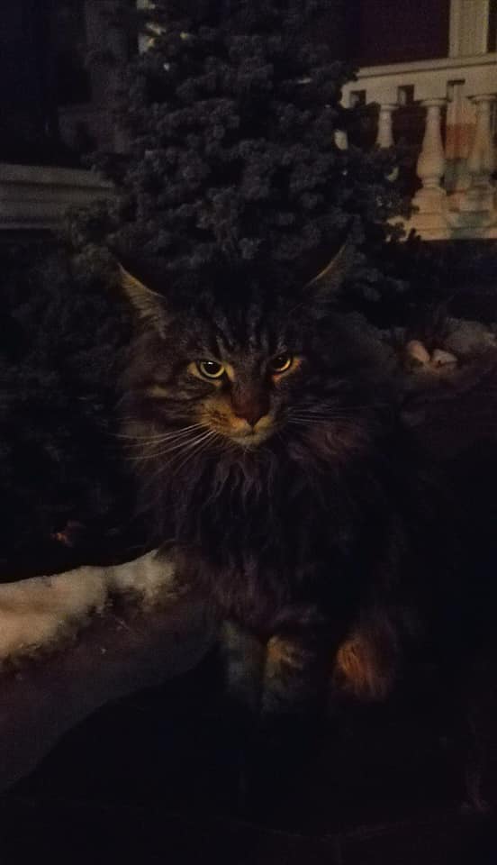 Отметим, что Кузьмич - кот породы американский мейн-кун с окрасом "черный табби".
