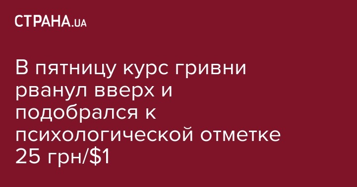 В пятницу курс гривни рванул вверх и подобрался к психологической отметке 25 грн/$1
