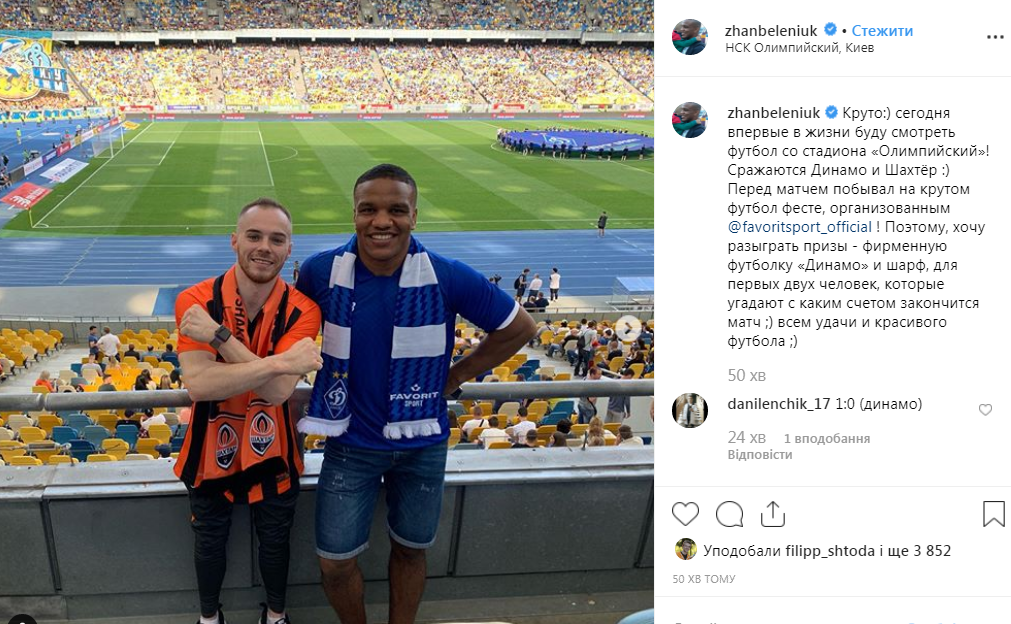 Сегодня впервые в жизни на футбол на НСК Олимпийский пришёл борец и народный депутат Украины Жан Беленюк.