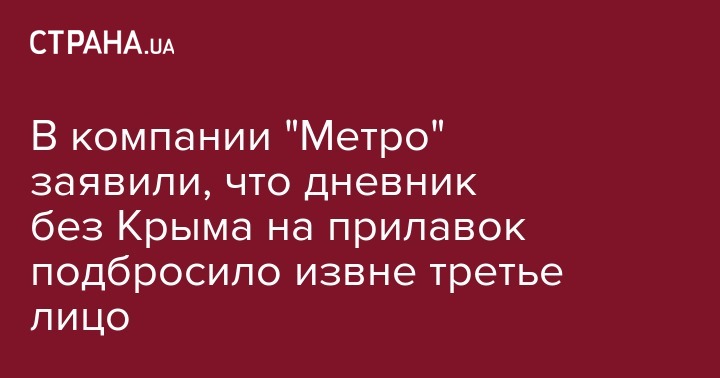 Компания "Mетро Кеш энд Керри Украина" заявляет, что дневник с картой Украины без Крыма, который приобрел покупатель в Киеве 11 августа, был принесен в торговый центр третьим лицом.