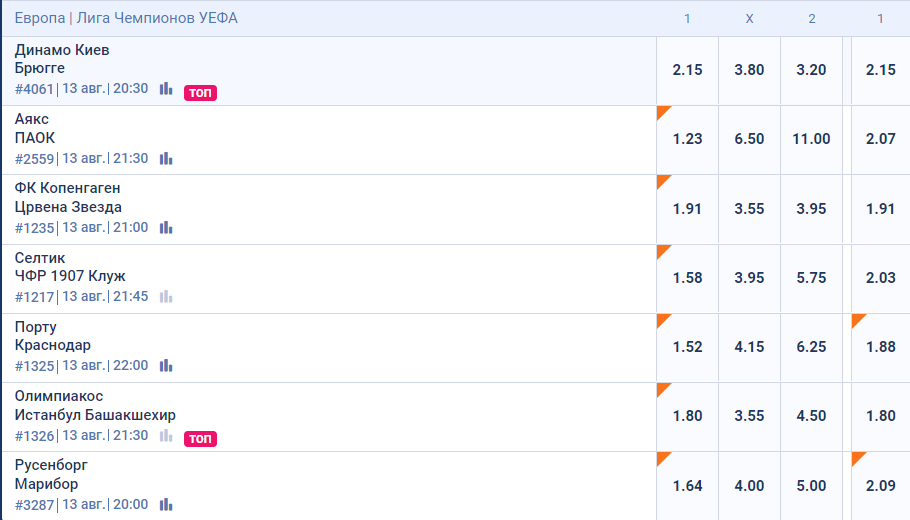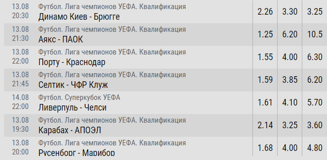 Ставки Пари Матч на матчи 3 раунда Лиги чемпионов и Суперкубок УЕФА