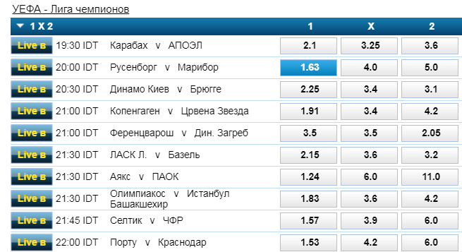 Все ставки William hill на матчи 3 раунда Лиги чемпионов