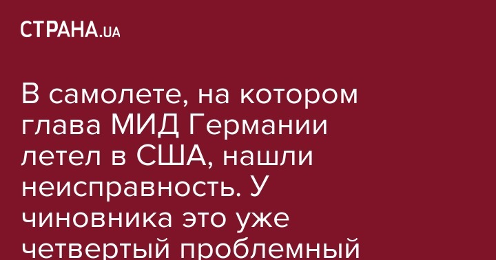 Министр иностранных дел Германии Хайко Маас пересел из правительственного самолета, на котором он летел в Нью-Йорк, из-за выявленной неисправности борта. Об этом передает Интерфакс-Украина со ссылкой на немецкий телеканал АРД.