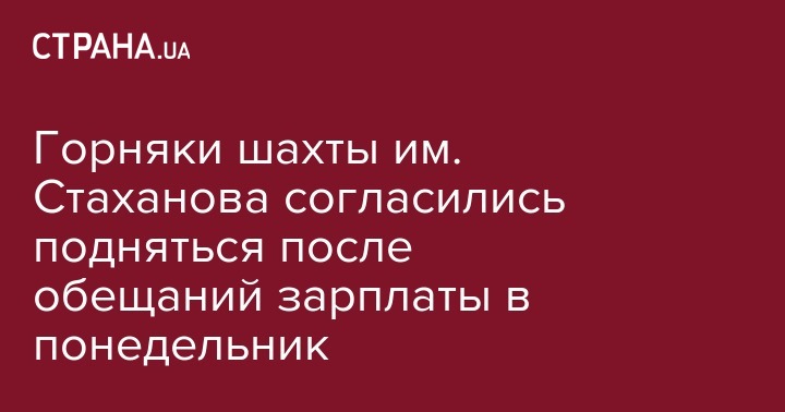 "Горняки шахты им. А.Стаханова в 20.20 поднялись на поверхность, проведя под землей дополнительно 6 часов после рабочей смены. Директор шахты заверил, что в понедельник зарплата будет выплачена. В ином случае шахтеры предпримут более радикальные действия", сообщил Волынец.