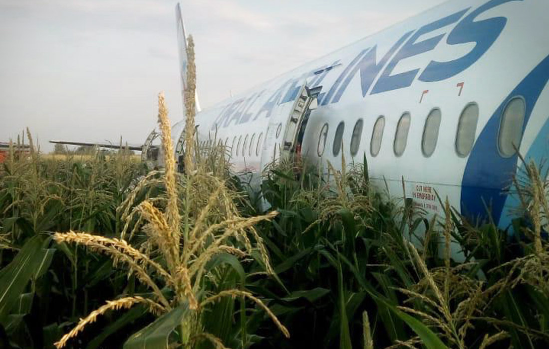 В сети появились фотографии, сделанные на кукурузном поле, где 15 августа совершил аварийную посадку пассажирский лайнер Airbus А-321 "Уральских авиалиний". Снимки опубликовало агентство "Интерфакс".