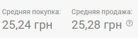 В обменках по состоянию на 08:30 средняя покупка 25,27 грн, средняя продажа - 25,35 грн. В 12:00 доллар подешевел на пару копеек: 25,26 грн - покупка и 25,31 грн - продажа. Ситуация на 17:30 показала, что сегодня весь день прошел с незначительным колебанием курса: покупка - 25,24 грн, продажа - 25,28 грн.
