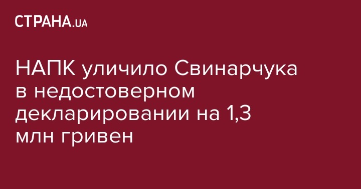 НАПК уличило Свинарчука в недостоверном декларировании на 1,3 млн гривен