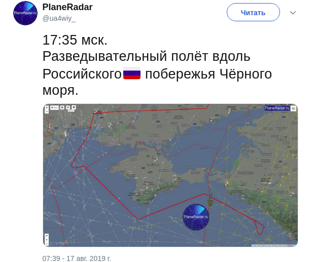 Разведывательный беспилотник ВВС США пролетел над Черным морем и изучил крымское, а также российское побережье моря, сообщает мониторинговый ресурс Plane Radar в Twitter.