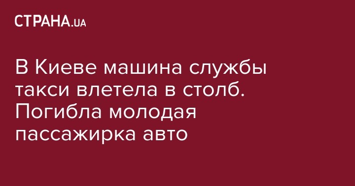 В Киеве машина службы такси влетела в столб. Погибла молодая пассажирка авто