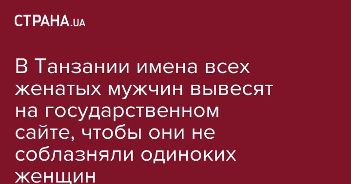Власти Танзании планируют опубликовать имена всех женатых мужчин страны, чтобы помешать им вводить в заблуждение одиноких женщин. Об этом сообщает угандийский новостной портал EDGE.