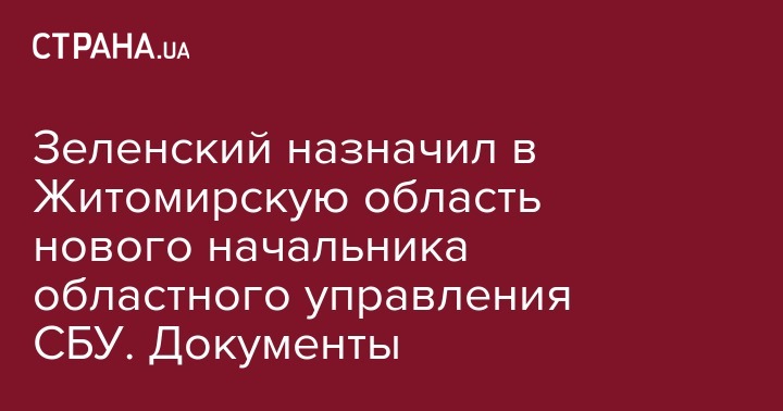 Зеленский назначил в Житомирскую область нового начальника областного управления СБУ. Документы