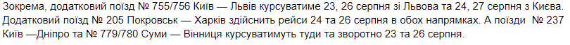 "Укрзализныця" пустила четыре дополнительных поезда на ближайшие выходные. Расписание обнародовано на сайте компании: