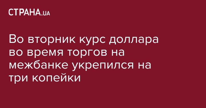 Во вторник курс доллара во время торгов на межбанке укрепился на три копейки