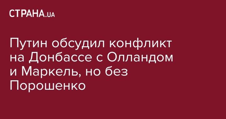 Путин обсудил конфликт на Донбассе с Олландом и Маркель, но без Порошенко
