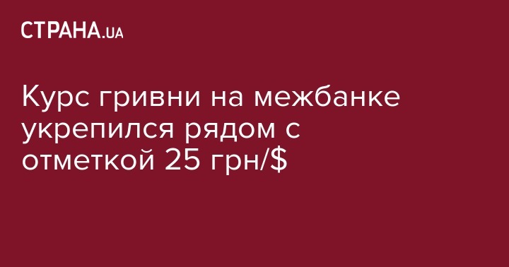 Курс гривни на межбанковском валютном рынке в четверг укрепился до 25,0475 грн/$1 с 25,135 грн/$1 в предыдущий рабочий день. Об этом сообщает "Интерфакс-Украина" со ссылкой на дилеров коммерческих банков.