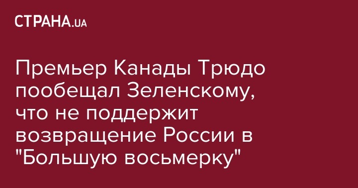 Президент Украины Владимир Зеленский поблагодарил премьера Канады Джастина Трюдо за  позицию, согласно которой возвращение России к формату "Большой восьмерки" невозможно в условиях агрессии на Донбассе и оккупации Крыма. Об этом шла речь в телефонной беседе между Зеленским и Трюдо, сообщается на сайте президента Украины.