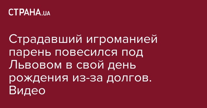 Страдавший игроманией парень повесился под Львовом в свой день рождения из-за долгов. Видео