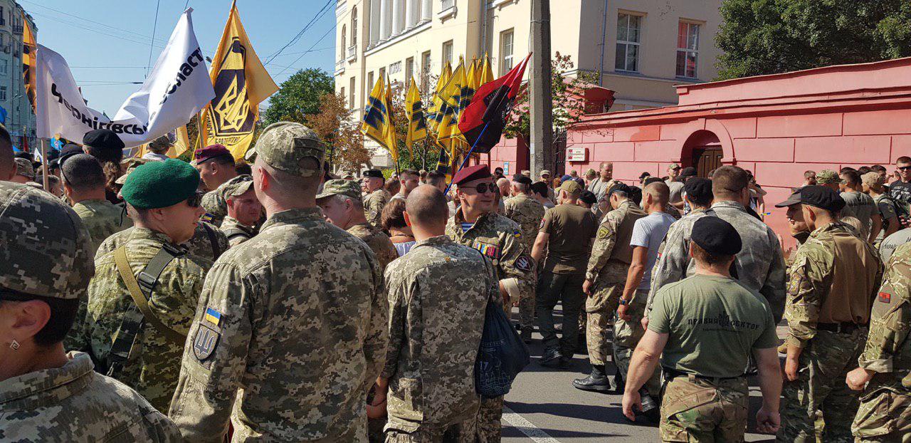 В нем заявлены участники АТО, семьи погибших и волонтеры. Колонна собиралась пройти от парка Шевченко до Майдана Незалежности.