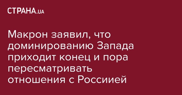 Макрон заявил, что доминированию Запада приходит конец и пора пересматривать отношения с Россиией