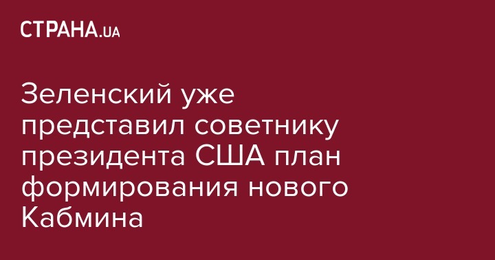 Зеленский уже представил советнику президента США план формирования нового Кабмина