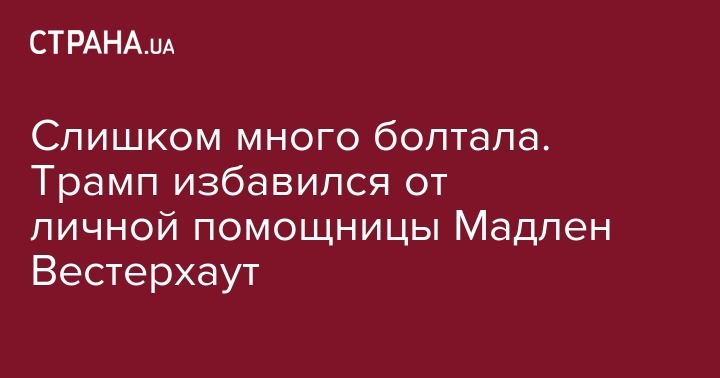 Президента США Дональд Трамп уволил свою личную помощницу Мадлен Вестерхаут за ее длинный язык. Предположительно, отставка произошла после того, как дама рассказала журналистам некие подробности из жизни главы государства. Об этом сообщает газета The New York Times.