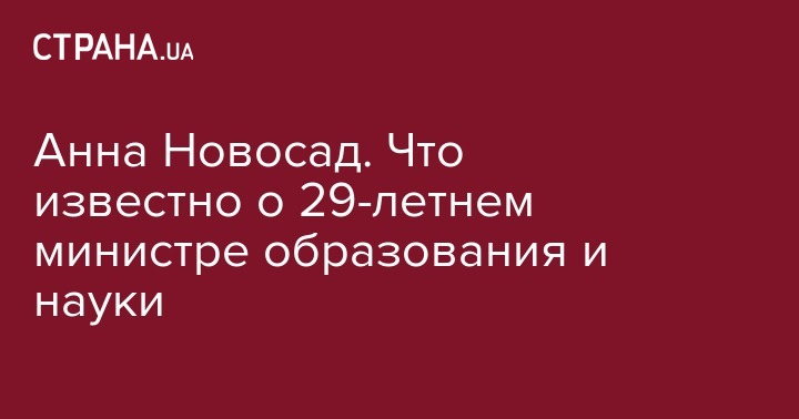 29-летняя Анна Новосад стала министром образования и науки Украины. В новом правительстве Алексея Гончарука она заняла должность Лилии Гриневич.