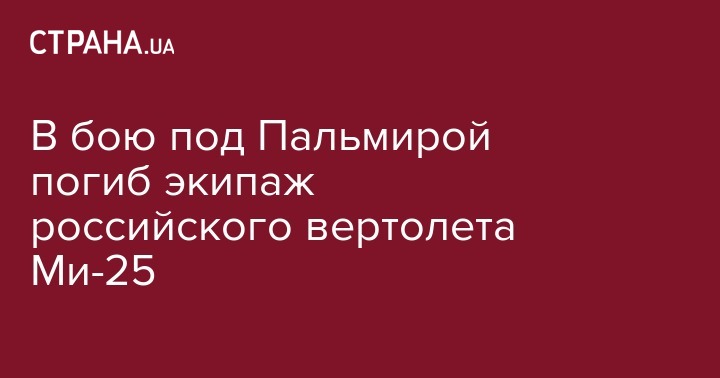 В Минобороны России сообщили о гибели экипажа российского боевого вертолета Ми-25 в Сирии, передает ТАСС.