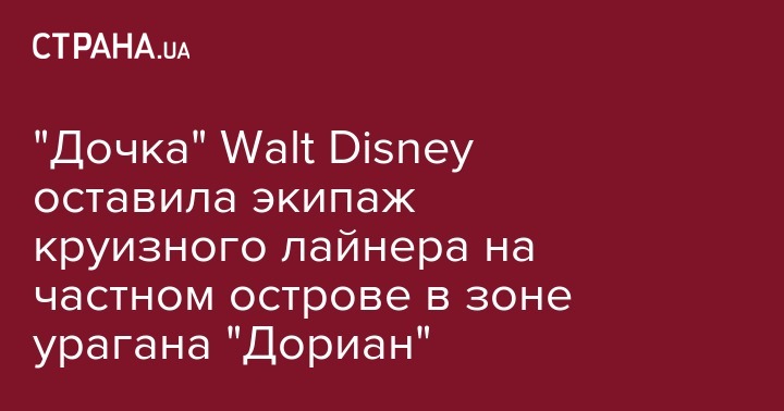 Disney Cruise Line, дочерняя компания The Walt Disney Company, оставила около 100 членов экипажа своего круизного лайнера на одном из Багамских островов, где бушует ураган "Дориан". Об этом передает ТАСС со ссылкой на сообщение, размещенное в воскресенье на сайте Disney Cruise Line.