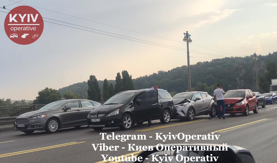 На мосту Патона в Киеве столкнулись четыре машины, из-за чего в сторону левого берега Днепра образовалась большая пробка. Об этом сообщает сайт "Киев оперативный".