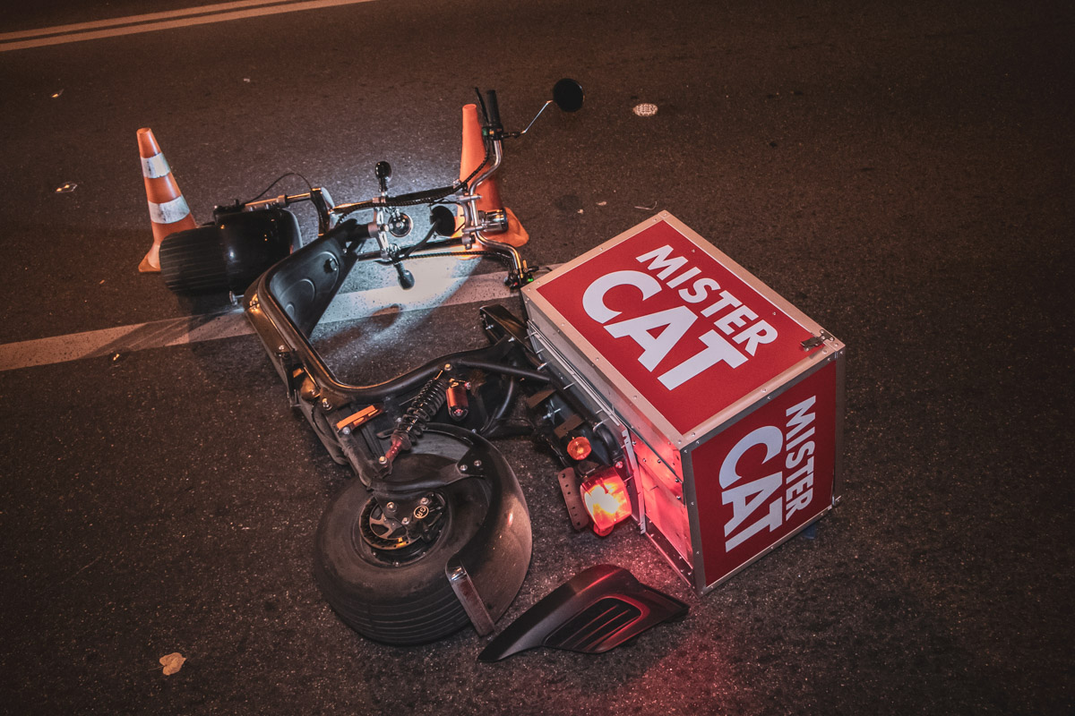 Вечером во вторник, 3 сентября, в Киеве на Васильковской улице произошло ДТП: такси службы Bolt сбило курьера сети ресторанов Mister Cat, который ехал на скутере. Об этом пишет "Информатор".
